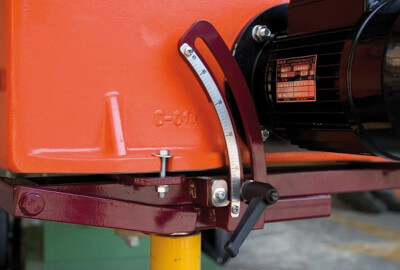 SR900 – The tilting device allows to manually tilt the machine up to 45°. The regulation can be easily make through a grade hand wheel adjuster.It must be considered that to higher inclination corresponds a lower side light.